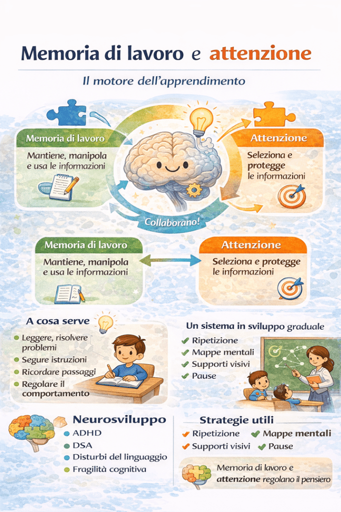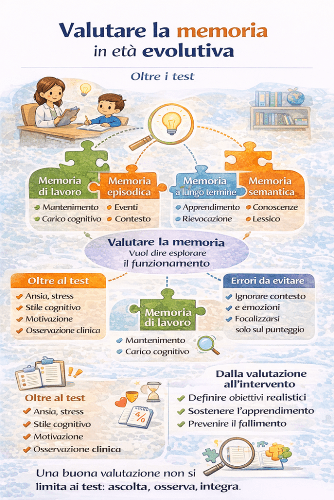 Nei disturbi del neurosviluppo non esiste un unico tipo di difficoltà di memoria, ma profili diversi, con caratteristiche, bisogni e risorse differenti.